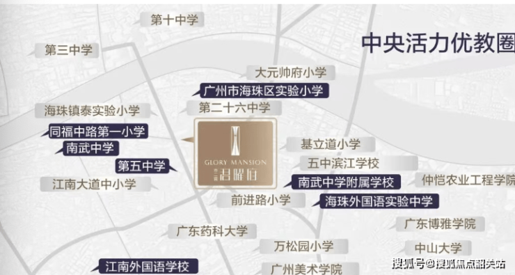 A: 项目对口海珠区实验小学(省一级第一梯队),步行即可到达。初中属于第四组派位,涵盖五中、六中、南武中学等名校。具体招生政策以当年教育局公示为准。