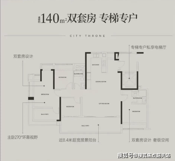 建筑面积约240㎡四至五房:分为东边户和西边户两个户型,共29层,每层3户,总计约54套货量。 这些户型设计注重南向采光、三面景观以及专梯专户等高端配置,旨在提供极致的生活体验。