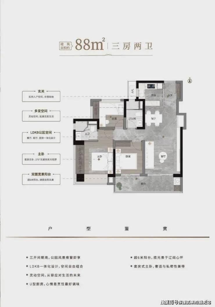 性价比突出:均价3.4万/㎡,低于周边新盘(万科城市之光3.8万/㎡)10%,88㎡三房总价280万起,门槛更友好。
