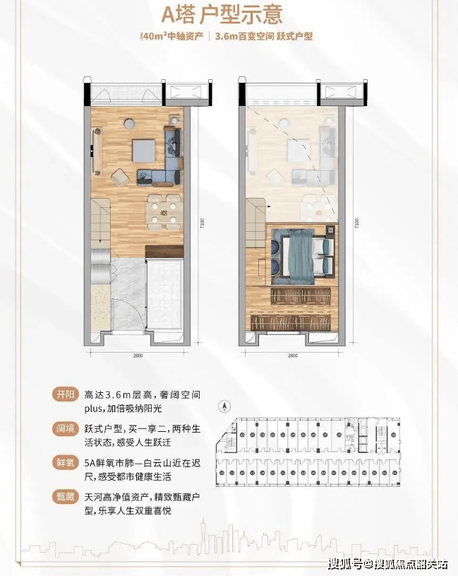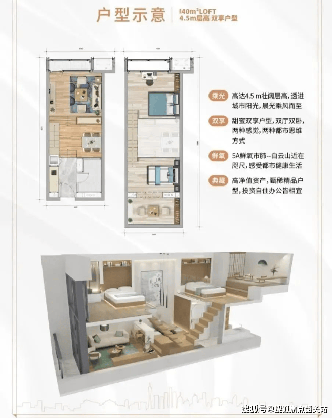 观成大楼:推售建筑面积约为31-57㎡中轴资产,合理规划卧室、厨房、卫生间,4.5米高超高空间,中空挑高设计。
