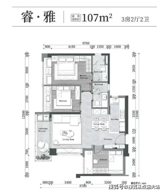 项目主推建面约107-180㎡三至四房户型,精准聚焦改善型家庭需求。空间设计注重功能与美学的平衡,部分户型采用LDK一体化布局(客厅、餐厅、厨房贯通),增强家庭互动性;更有双主卧套房设计,兼顾私密与舒适,满足多代同堂或高阶生活场景。