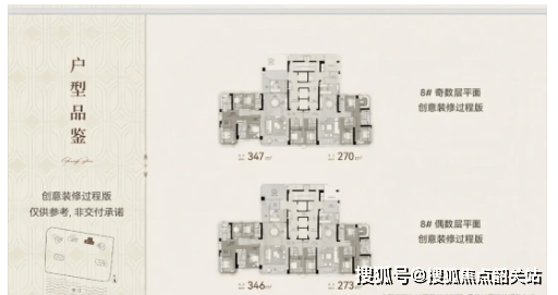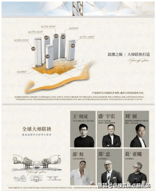 项目全盘规划 6 栋住宅,呈北高南低的半月型布局,货量约 500 套。目前已拿证的 3 栋为 50 层高,4 梯 3 户设计,涵盖 205、225、228 平户型;6 栋和 8 栋为 48 层高,3 梯 2 户设计,推出 277、348 平大平层产品。暂未拿证的 5 栋为 50 层高,3 梯 2 户,面积 241 平;9 栋 37 层高,2 梯 2 户,面积 408、435 平;1 栋作为楼王,35 层高,一层一户,面积 630 平。