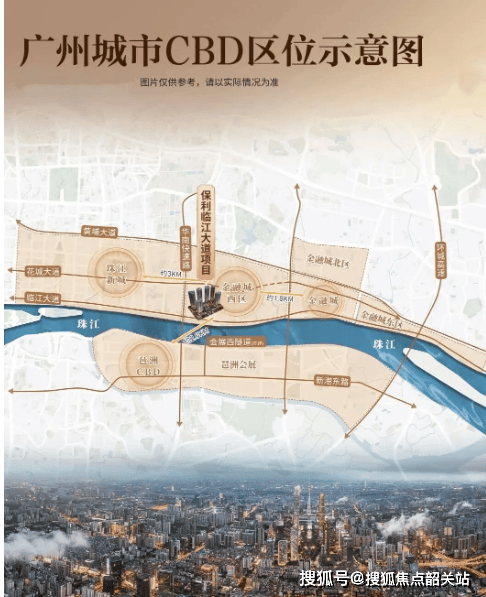 项目坐落于天河临江大道北侧 AT080722 地块(南方面粉厂地块),处于金融城西区桥头堡位置,规划面积约 3.65 平方公里,是珠江新城东扩的关键区域。该片区串联珠江新城、国际金融城和琶洲三大 CBD,形成 "1+1+1>3" 的联动发展模式,10 公里江岸线汇集三大核心片区,这一布局在国内大城市中较为罕见。