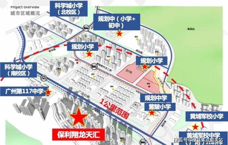 项目约1公里,可步行的范围内,小学有5所(含已规划的一所),包括科学城小学、黄陂小学、黄埔军校小学、联和小学;中学2所,为117中学和黄埔军校中学。(注:学校地段划分以当年教育局公布信息为准)