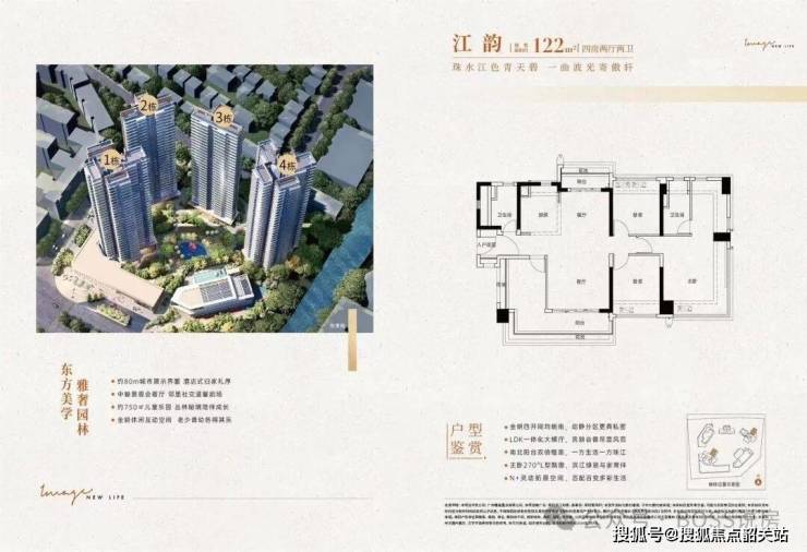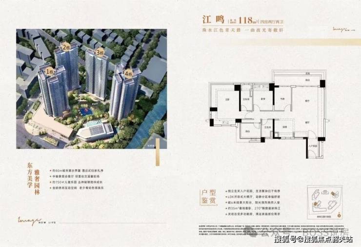 楼盘整体规划方面,项目总占地面积1.89万㎡,总建筑面积4.78万㎡,由4栋32层高层住宅、1所6班幼儿园和社区底商构成,采用半围合式建筑排布,户户错开,均为南向设计,既保证了每一户的采光和通风,又能极大地发挥地块优势,确保超80%的户型可赏江景,居家即可270°尽揽数百米宽的珠江岸线,与珠江新城CBD隔江相望,璀璨夜景一览无余。