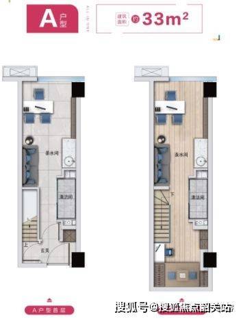 从项目释放的户型信息来看,这种约33平方米的复式户型,通过层高的合理利用(通常为LOFT设计,具体层高需以实地测量和合同为准),实现了上下双层的空间分隔。