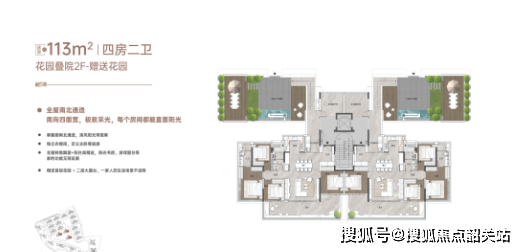 2. 低密花园叠院(玥境系列):主打112-124㎡户型,层高仅5层,属于广州近10年绝版的类墅级产品,低密舒适,赠送面积大,具体户型如下: