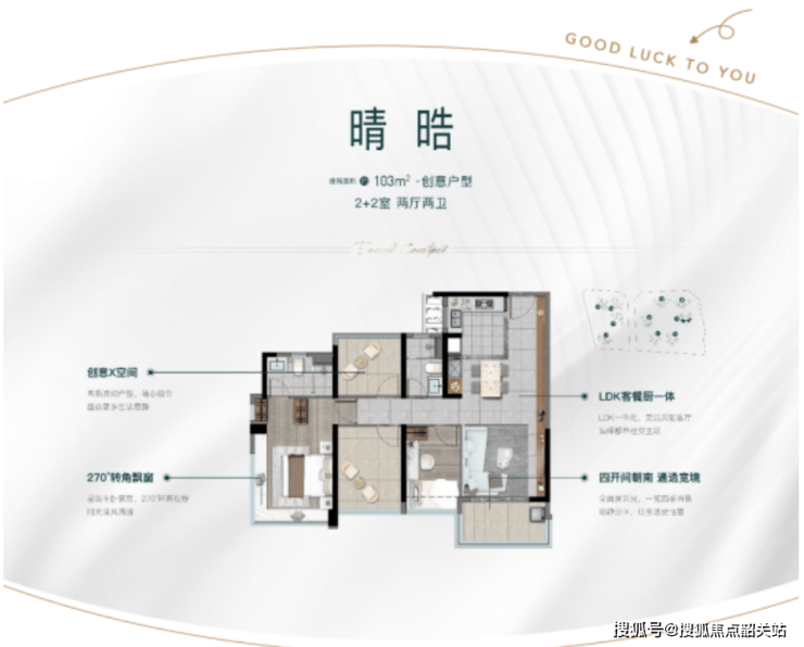 约100㎡以上户型则偏向改善型需求。此类户型通常拥有更加宽敞的客厅空间,同时增加独立书房或多功能房,适合家庭办公、学习或儿童成长需求。主卧室往往配备270°转角飘窗设计,使居住空间更加开阔,同时增加自然采光。