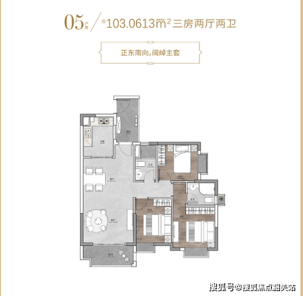 三口之家可以看90㎡的三房,总价约328万。U型厨房设计很实用,预留了冰箱位,公卫干湿分离,细节考虑得很周到。如果想要更多的收纳空间,99㎡的户型多了个储物间,餐客厅连通显得特别通透,主卧还有独立衣柜区,适合东西多的家庭。最大的103㎡户型,总价跨度比较大,在336万到450万之间,主要看楼层和朝向。这个户型的客厅面宽更大,阳台也更宽敞,部分房源还能看到远处的街景,适合有老人同住需要更大活动空间的家庭。总的来说,这里的户型没有太多花哨的噱头,主打就是一个“实用”。在老城区,每一平米都很金贵,能把空间利用率做到极致,才是真本事。
