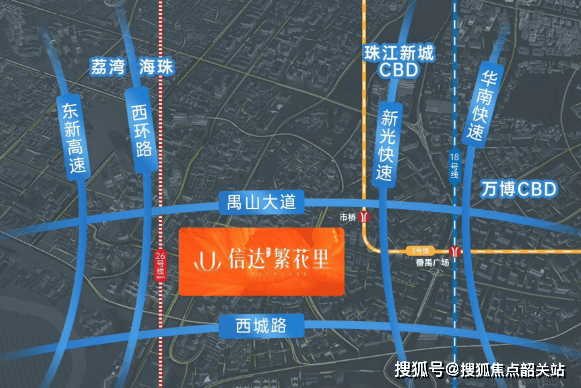 优越的地理位置:信达·繁花里位于市桥老城核心区,距离市桥地铁站步行约1.7公里,通过地铁3号线可快速抵达多个重要商圈和区域,如珠江新城、万博CBD等。此外,规划中的26号线有望在地块附近设站,进一步提升项目的交通便利性。