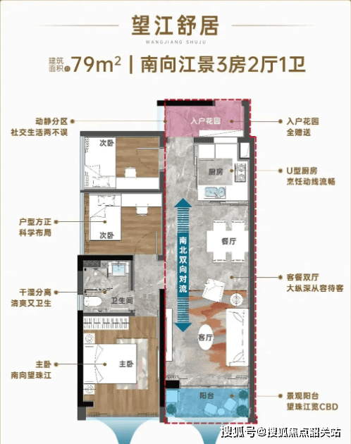 79-84㎡南向三房两厅一卫(带入户花园):该户型是金融城CBD里稀缺的南向小三房,单价4字头起即可入手,性价比极高。户型布局紧凑实用,无浪费空间;带入户花园,可作为收纳空间或休闲区域,提升居住舒适度;客厅连接阳台,采光充足,同时可欣赏江景与社区景观;三房设计,可满足刚需家庭或三口之家的居住需求,无论是自住还是过渡性置业,都是优质选择。