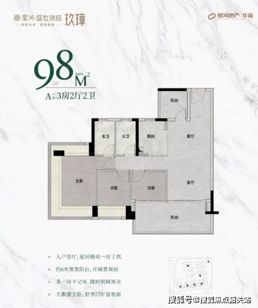 主朝向朝南,配备270°无柱飘窗,视野开阔,采光充足。