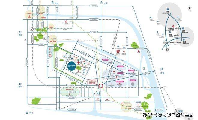 五维立体交通:1 个高铁(庆盛高铁站,13 分钟直达广州南,21 分钟直达深圳北,35 分钟直达香港西九龙)、1 个机场(南沙通用机场,预计 2025 年完工)、2 条地铁线路(地铁东涌站 4 号线、22 号线规划中,还有南沙有轨电车 NS1、NS4规划中)、3 条快速路(南沙港快速路、广澳高速、广州绕城高速)、4 座过江大桥(沙湾大桥、观音沙大桥、虎门大桥、南沙大桥)、10 个公交站(其中距离项目约 400 米东涌镇政府站乘坐南 35 路、南 37 路、南 52 路可约 10 分钟接驳东涌地铁站)、15 条公交线路,出行超便捷