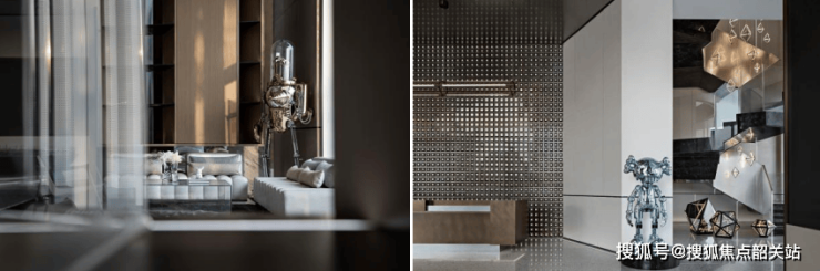 当纯粹的空间结构和考究的细节相融汇,富有机械美感的艺术装置的植入堪称点睛之作。利用设计语言,将光影与装置的结合,更加凸显了空间的氛围感。