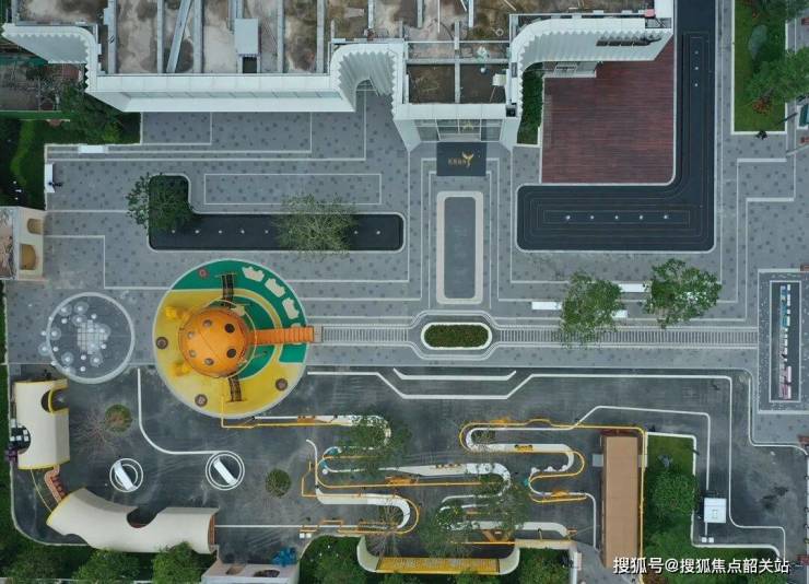 以“圆”为视觉中心,通过强烈的色彩碰撞,打造具有视觉冲击力的活动场地。沿着楼梯,孩子们拾级而上、自由奔跑。在活力满满的空间里,每个人都能做回“孩子”!