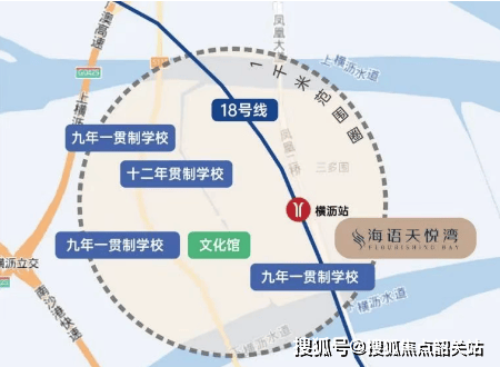海语天悦湾位于南沙区横沥岛核心位置,距离18号线横沥站直线距离仅约500米,步行十分钟内即可到达地铁站。18号线连接珠江新城、琶洲新区等多个城市CBD,并南延至中山、珠海等地,交通便利性极高。此外,项目临近广澳高速和南沙港快速路,随着深中通道、南中高速及万顷沙支线等重大交通基础设施的建设,未来将大大缩短与深圳等珠三角城市的通勤时间。