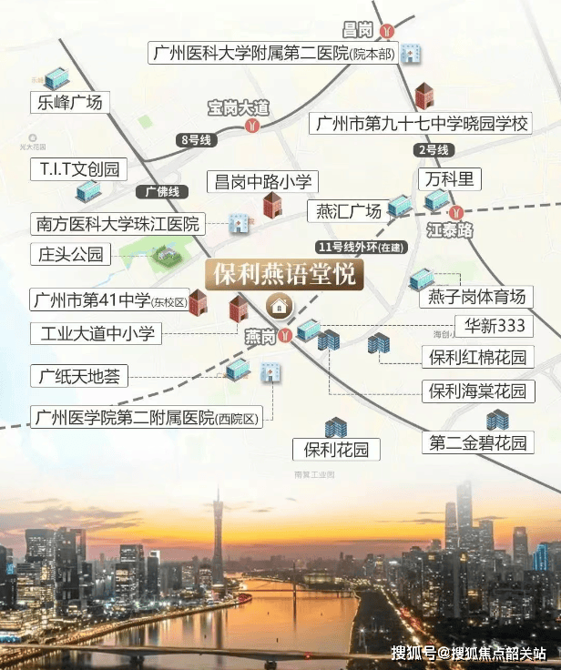 保利燕语堂悦地理位置优越,周边交通网络发达。距离地铁站仅需步行数分钟,首条“换乘之王”黄金环线贯穿其中,极大地方便了居民前往广州各大中心区域。此外,项目周边还有多条公交线路,进一步提升了出行的便利性。