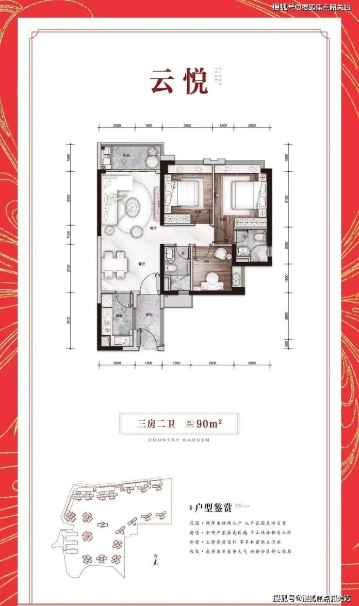 90㎡精致三房:入户花园灵动百变,全明户型采光优越,半山林海拥景入怀,动静分区舒心雅居。
