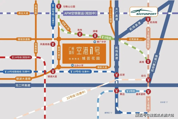 空港1号位于空港经济区核心居住区,北接白云国际机场(直线距离8公里),南连白云新城(车程25分钟),东邻广州北站(车程15分钟),形成“15分钟空铁联运圈”。根据《广州市轨道交通线网规划(2025-2035)》,项目周边将新增地铁22号线北延段(空港站),预计2028年通车,届时3站到白云新城、5站到珠江新城(规划信息来源:广州市发改委)。
