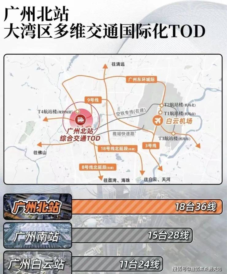 TOD 核心区位,多维交通:项目位于广州北站 TOD 核心区,与广州北站仅一路之隔,覆盖 6 高铁、3 城际、4 地铁的多维交通网络,空铁联运优势明显,通勤出行便捷高效。