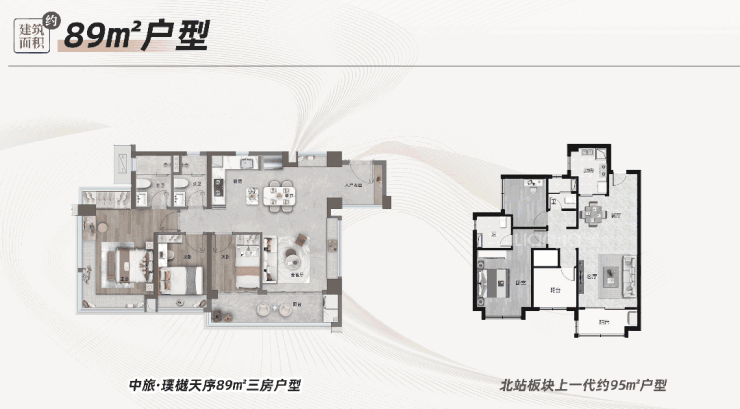 答:中旅璞樾天序目前在售的主力户型,包括建面约 89㎡的 3 房 2 厅 2 卫户型、建面约 108㎡的 4 房 2 厅 2 卫户型、建面约 129㎡的 4 房 + 1 创意空间 2 厅 2 卫户型,覆盖了刚需、改善等不同的置业需求,所有户型均采用了新规设计,空间使用率高,采光视野好,居住舒适度高。