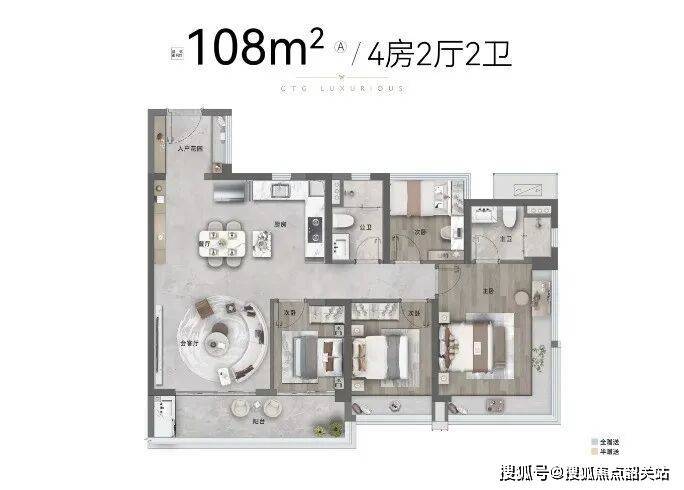 经过多次的实地考察,和全家人的商量,刘女士夫妻俩最终选择了中旅璞樾天序,定下了建面约 108㎡的四房户型。
