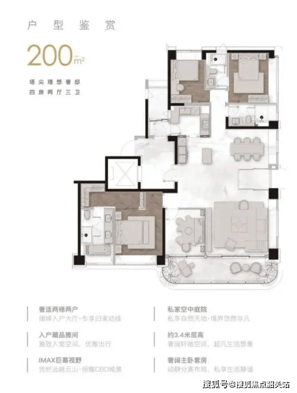 社区内部采用度假式园林设计,中央草坪面积超2000㎡,搭配遮阳廊架、休憩座椅和四季常绿的珍稀植被。已投入使用的“壹会馆”私享会所约3000㎡,里面有恒温天空泳池、健身房、书吧和私宴厅,日常健身、朋友小聚都不用出小区。归家动线也花了不少心思:从酒店式环岛落客区,穿过光影水景廊道,进入层高约10米的艺术大堂,仪式感自然流露,不刻意却很舒服。