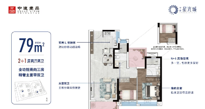 中建星光城推出约69-100㎡的南向三四房户型,全南向布局确保了每一户都能享有充足的阳光和良好的视野。户型设计灵活多变,空间利用率高,适合不同类型的家庭居住需求。精装修交付标准,让业主可以轻松入住,无需担心装修问题。