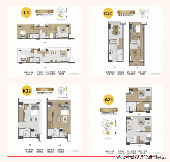 产品类型:40-103㎡复式、平层公寓,覆盖单身、家庭、企业办公多元需求