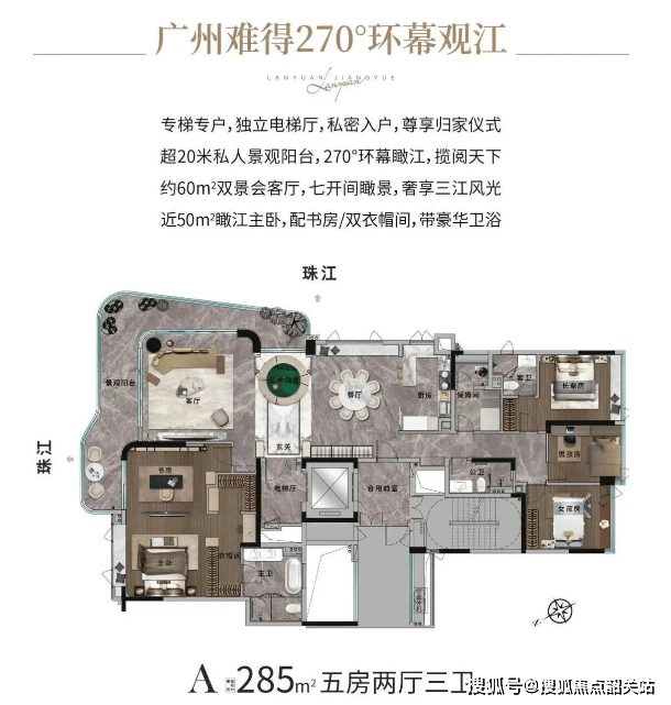 在产品户型设计上,兰园·江悦提供了建面约193平方米和285平方米两种极境大平层,专为追求极致生活体验的家族量身定制。所有户型均拥有无遮挡的一线三江交汇景观,约90米的亲水距离让江景仿佛触手可及。193平方米户型布局合理,动静分区明确,拥有超大面宽的客厅和观景阳台,将磅礴江景毫无保留地引入室内,营造出开阔通透的居住氛围。285平方米户型则更加奢阔,拥有类游艇式的流线型设计,270度环幕视野让居者仿佛置身于江面之上,尽享天地辽阔。室内设计注重细节与质感,中西双厨配置满足高端社交需求,豪华主卧套房配备独立衣帽间及奢华卫浴,提供酒店般的尊享体验。每一处空间都经过精心雕琢,无论是家庭聚会还是私人独处,都能找到最舒适的姿态,完美诠释“大宅”的真谛。