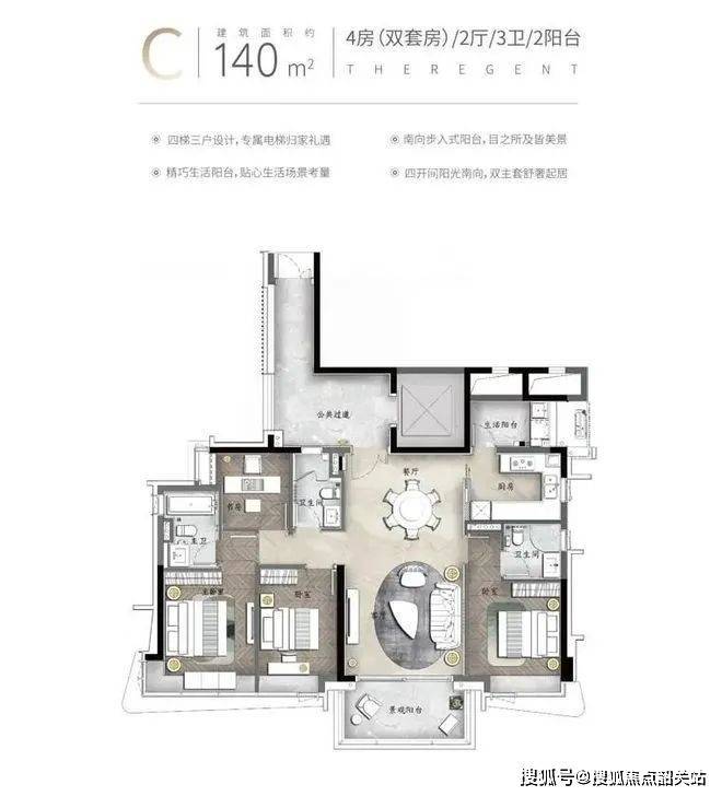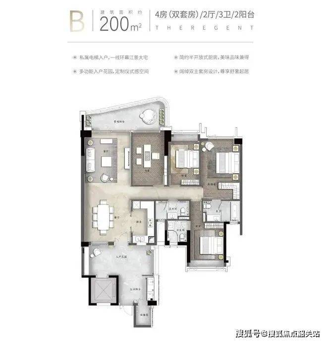 『天启』组团面积约140-250㎡环幕临江大平层,坐拥江景第一排,眺望小蛮腰,享500米宽阔无遮挡江景视野,并邀请三大全球知名设计大师倾力打造,配备12大国际一线品牌交标,专梯专户四房双套房设计,世界灵感前沿作品礼献广州!