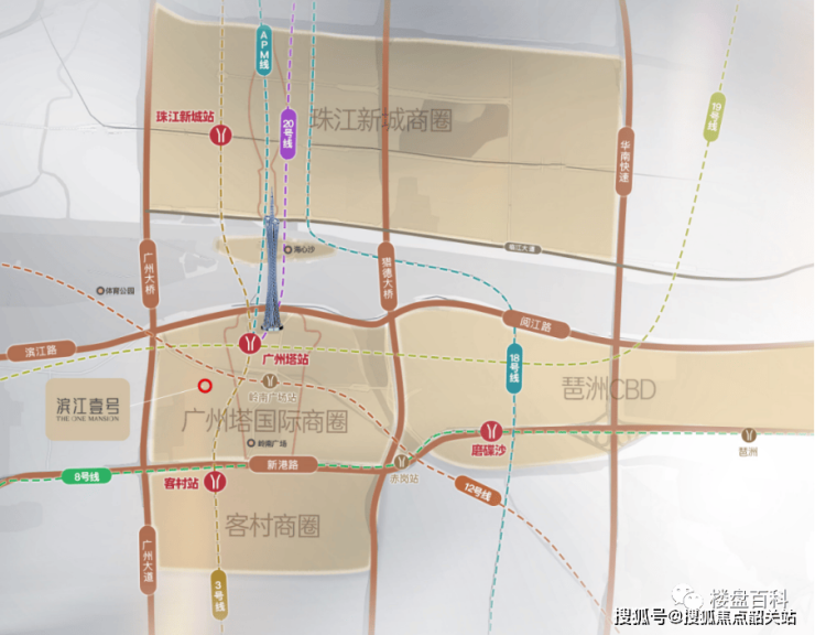 步行约 500 米可达地铁 12 号线赤岗塔站,12 号线为广州南北向骨干线路,1 站直达二沙岛,1 站直达琶洲商圈,进一步缩短与琶洲数字经济区的通勤距离;步行约 700 米可达 APM 线广州塔站,APM 线 1 站直达珠江新城核心区,无缝衔接花城广场、K11 等高端商圈,满足商务出行、休闲购物的快速接驳需求。地面交通方面,项目毗邻广州大桥、猎德大桥,自驾约 1.5 公里直达琶洲 CBD,约 2 公里直达珠江新城,快速接入广州大道、新港中路等城市主干道,跨区出行便捷高效。整体来看,项目 4 条地铁、3 大站点环绕,步行距离均控制在 700 米以内,地铁线路覆盖广州核心城区所有重点板块,无论是日常通勤、跨区商务还是休闲出行,均能实现高效直达,解决核心区出行拥堵痛点。