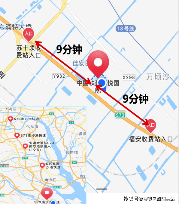 项目距离南沙枢纽(万顷沙站)约2公里,构筑15-30-60分钟湾区生活圈