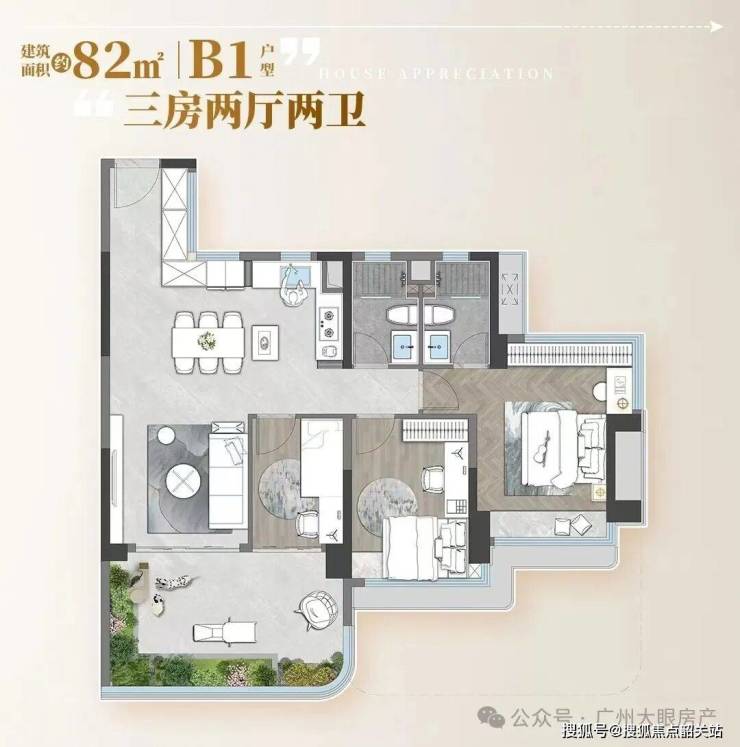 别人的85㎡做小三房一卫,招商的82㎡能做3+1房,未来在二手市场上也会更加有优势。