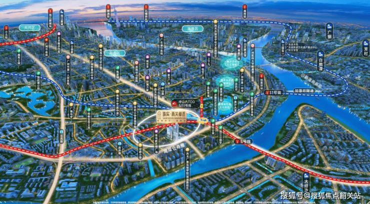 直线距离约500米处便是地铁5号线、11号线(在建)的中山八站,通过这两条线路可直达白鹅潭、珠江新城CBD、琶洲CBD等多个重要商务与商业区域。此外,项目所在的中山八路还是重要的TOD枢纽,汇集了多条公交线路,形成了一个集地铁、公交于一体的综合性交通枢纽,大大提升了出行效率。自驾出行方面,项目可通过内环A、B线无缝连接市中心主干道,半小时内即可通达各中心城区。