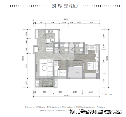 103㎡3房2厅2卫+1灵动空间:总价约485万,四开间朝南,得房率约96%;