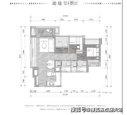 80㎡2房2厅2卫+1灵动空间:总价约385万,全明格局,适合年轻家庭;