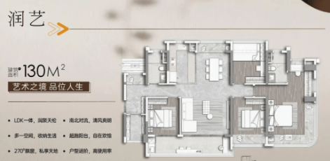 约130㎡南北对流五房:超62㎡LDKB大方厅,打造多功能家庭共享空间。