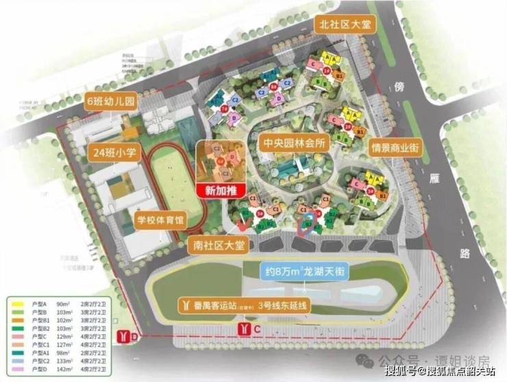 项目自带广州首座8万方的龙湖天街,还有6000㎡的社区底商。