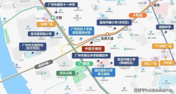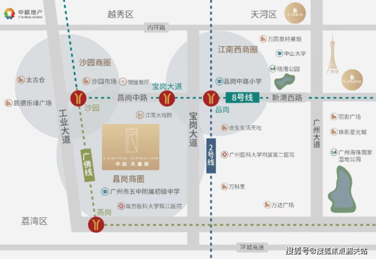 中旅天宸府的位置就在其中,它处于海珠老城区昌岗中路与宝岗大道交汇处。