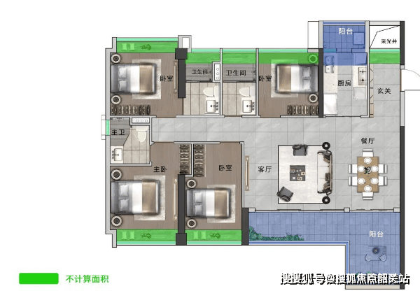在户型设计方面,白云·品实云湖花城展现了卓越的创新力。以主力户型125㎡四房两厅两卫为例,与5年前同面积段产品相比,实现了多方面的革新。“洄游动线”的设计,让室内空间更加流畅,减少了不必要的走动距离,提高了生活效率。家人之间在不同功能区的活动更加便捷,增强了家庭成员之间的互动与交流。“家政空间解放”的设计理念,将家政区域独立出来,并配备了完善的收纳系统。洗衣机、烘干机等家电设备有了合理的安置空间,同时还可以存放清洁工具、杂物等,使家居环境更加整洁有序。“南向面宽最大化”的设计,让室内获得了充足的自然采光和良好的通风效果。大面积的南向窗户,将阳光和新鲜空气引入室内,营造出舒适宜人的居住环境。