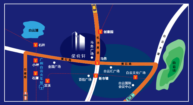 交通网络极为发达。项目紧邻地铁 14 号线 2 期马务站、12 号线广州白云站棠溪站以及 8 号线北延长线小坪站(均在建中)。建设中的广州白云(棠溪)站,将实现 6 地铁交汇,涵盖 8 号线北延段、12 号线及 22 号线北沿线等,还配备高铁、普铁、长途汽车、公交枢纽等,形成强大的综合交通体系。此外,机场高速公路、广清高速公路和白云大道北近在咫尺,无论是日常通勤,还是跨城出行,都能轻松实现,大大提升生活的便利性与效率。