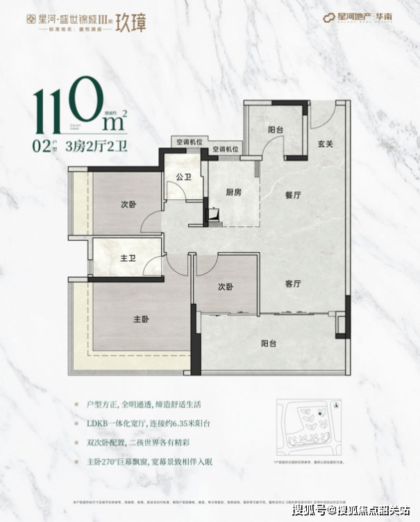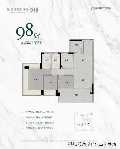 星河·盛世锦城推出的三期玖璋组团,主打全南向排布的小高层住宅,实用率高达98%以上,部分户型更是南北对流,确保室内空气清新流通。主要户型包括: