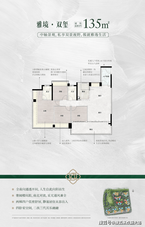 135-138㎡世家格局户型:设计了“LDKB一体化宽厅+双阳台”,实现了生活功能与美学体验的双重平衡,三面采光的主卧提供了无界视野,尽显奢华享受。