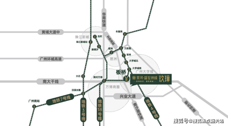 星河·盛世锦城位于两大世界级商圈(万博和琶洲)与三大科创轴交汇处,地理位置优越。周边有广深港澳科技走廊、广州科技创新轴以及南大干线经济带等重要产业带,构成了城市发展的重要引擎。该项目不仅享受双商圈辐射带来的便捷生活,还能依托区域内的创新资源,实现生活品质的全面提升。