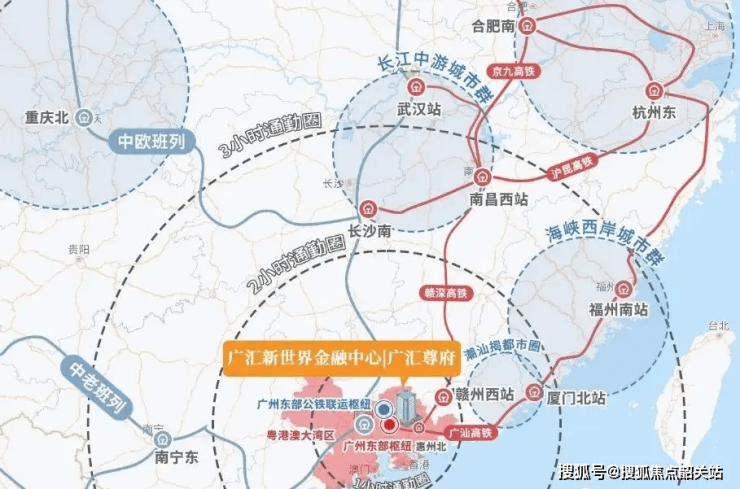 穗深城际:新塘南站(项目直线距离1.2公里)30分钟到深圳机场,1小时直达香港西九龙;