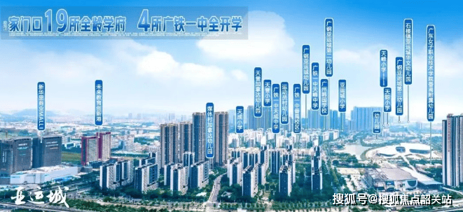 答:项目内部规划19所学校,已建成18所并全部开学,包括9所幼儿园、5所小学、3所初中和2所高中。其中4所省一级标准的广铁一中学校均已投入使用,1公里范围内集中了13所学府,大部分居民子女可实现步行上学。