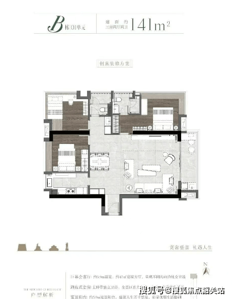 B 栋 01 单元 141㎡三房为大方厅设计,02 单元 115㎡三房六开间朝阳,03 单元 146㎡三房东西对流;A 栋 01 单元 141㎡三房东西对流,02 单元 93㎡三房性价比高,03 单元 139㎡四房三面采光且带三阳台。2 梯 3 户的低密度纯板楼设计,全智能自动化车库实现人车分流,为居者提供舒适的居住环境。