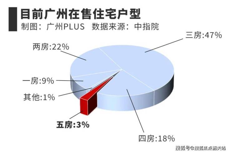 要知道,虽然目前随着三孩政策的开放,人们对居住空间的要求越来越大,但市面上五房户型是绝对的稀缺货。根据中指院数据,目前广州在售住宅中,五房户型仅占约3%。