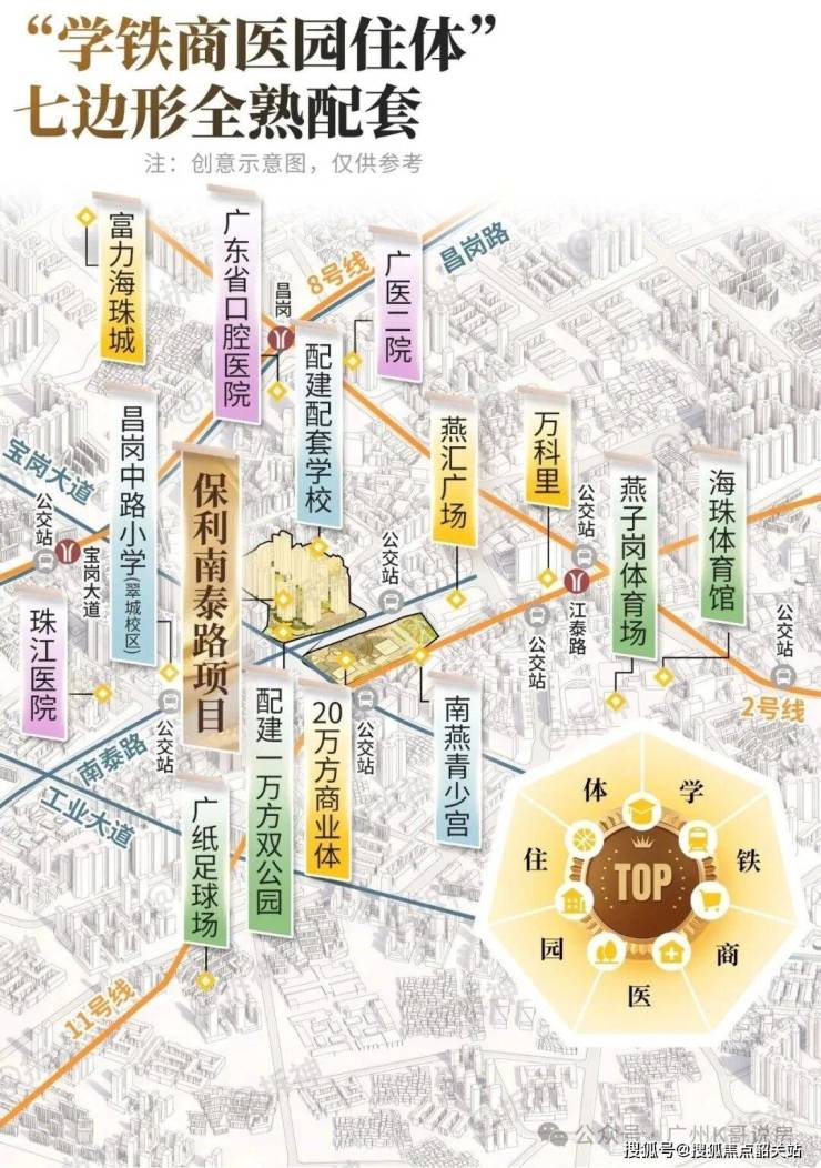 2025 年,保利发展拿下海珠区南泰路地块,打造保利海玥项目。项目位于海珠正芯位置,集居住、教育、商业、生态等多种功能于一体,打造约 40 万方花园综合体。项目以 “花园城市” 为设计理念,通过十字型生态支架串联各个功能区,实现城市空间与社区生活的有机融合。